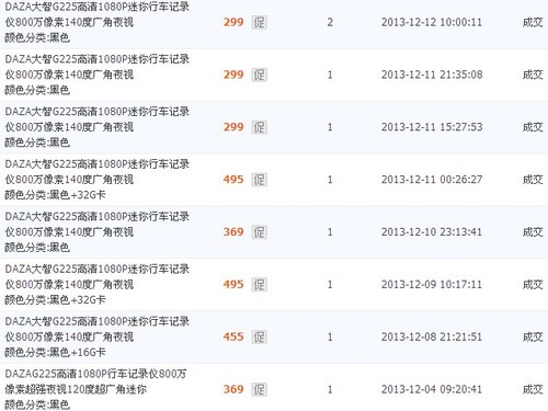 而查看以前的交易月成交記錄可以看到,在雙十二之前購買的話,價格最低也是369元,如果選購搭配內(nèi)存卡的套餐就更貴了,在雙十二活動期間的價格確實是歷史最低價。