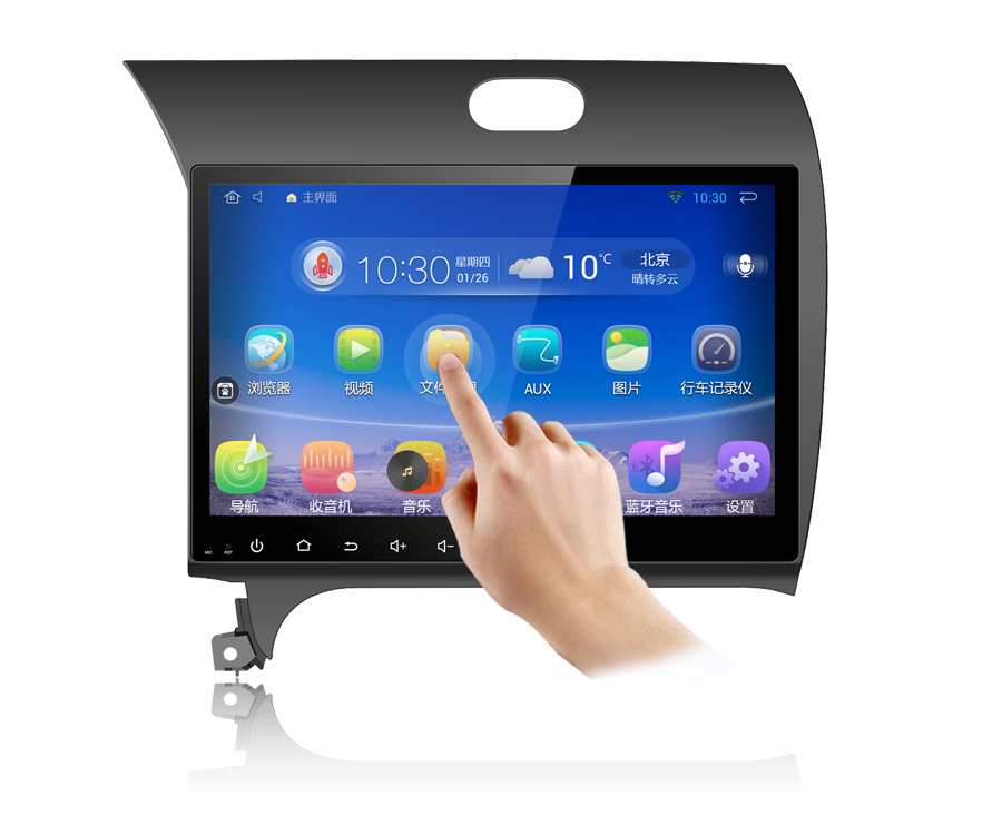 美匹配。大的沒(méi)有朋友的10.2寸高清電容屏,這塊電容屏分辨率為1024*600,并且支持多點(diǎn)觸摸,同時(shí)還取消掉了普通車載影音導(dǎo)航的實(shí)體按鍵,全部采用觸摸方式,感覺(jué)檔次立馬就上去了。