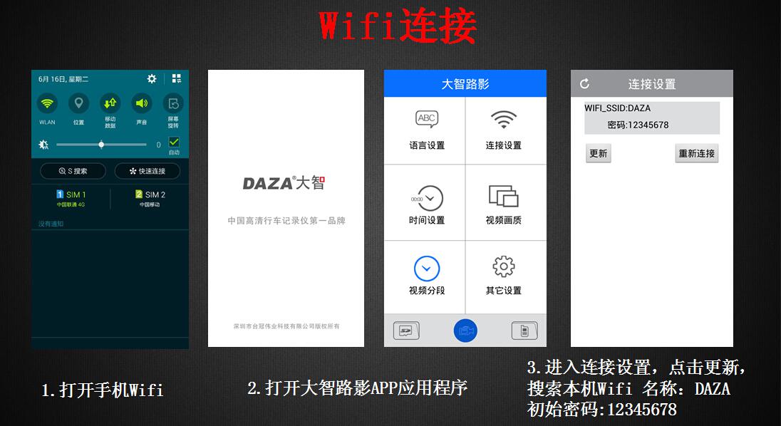 利用手機(jī)APP應(yīng)用程序,使手機(jī)和行車(chē)記錄儀通過(guò)WiFi無(wú)線(xiàn)聯(lián)接,可以隨時(shí)顯示回放下載行車(chē)記錄視頻。