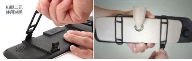 首先,后視鏡支架的安裝,這種安裝比較適合后視鏡的安裝方式,選擇這種方式安裝的行車記錄儀不容易晃動脫落。給大家分享一下安裝圖片: