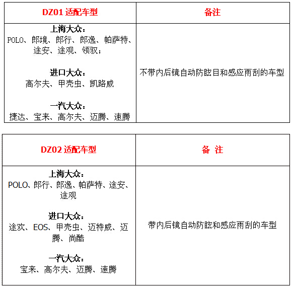 大智大眾專車專用行車記錄儀擁有DZ01和DZ02兩個(gè)型號(hào),適配詳情如下: