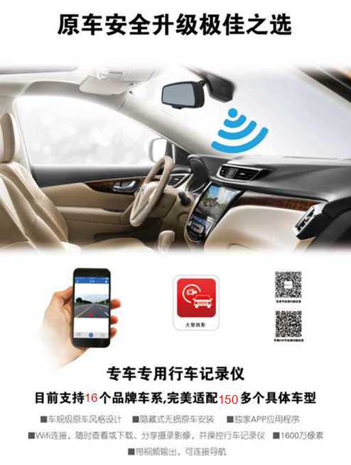 車聯(lián)網(wǎng)智能車生活方式,采用最新潮的手機(jī)APP智能操作系統(tǒng),WIFI無線互聯(lián),獨(dú)家開發(fā)APP支持蘋果、安卓系統(tǒng),二維碼一掃即安裝,手機(jī)下載回放更便捷,原車視頻輸出,享受高清畫質(zhì),隨時(shí)隨地錄像拍照,朋友圈即時(shí)分享視頻。大智專車專用隱藏式行車記錄儀抓拍直接手機(jī)存儲(chǔ),簡(jiǎn)單操作行云流水般聯(lián)接,手機(jī)成了汽車界抓拍神器。
