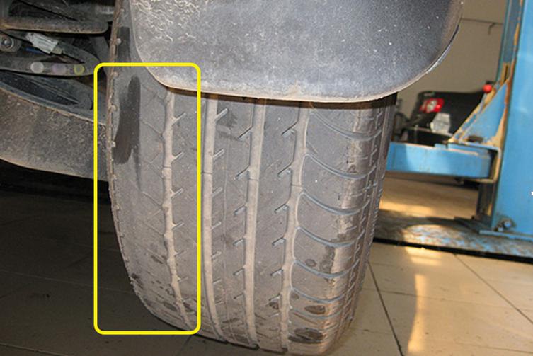 輪胎變形多出現(xiàn)在新車或久置不開的車子上,由于車輛長時間在車庫中放置不動從而使輪胎外形發(fā)生改變,導(dǎo)致向左或向右跑偏。
