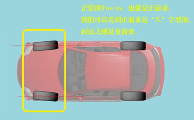 先為大家解釋下神馬是前輪前束:是指前輪前端面與后端面在汽車橫向方向的距離差,也可指車身前進(jìn)方向與前輪平面之間的夾角,此時也稱前束角。