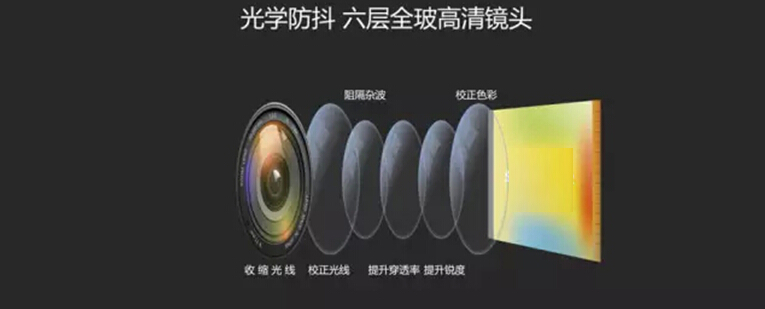 頂級六層全玻璃鏡頭,由6片結(jié)構(gòu)精巧的玻璃鏡片組成,昂貴的藍光鍍膜可以有效抑制散光,去紫邊、鬼影,顏色更真實更明亮,畫質(zhì)更細膩。