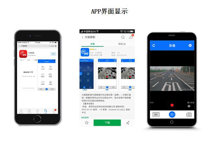手機可以操控行車記錄儀是大智謳歌專車專用的一大特點,采用手機APP應(yīng)用程序(大智車聯(lián)),由于行車記錄儀內(nèi)置wi-fi模塊,實現(xiàn)了行車記錄儀與手機無線連接,可以隨時查看、下載、分享行車攝錄視頻,而且完美兼容安桌手機和蘋果手機系統(tǒng)。