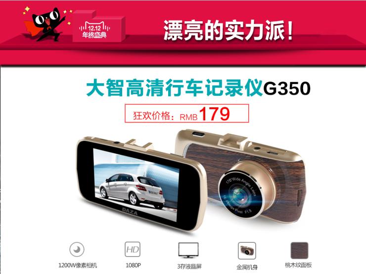 在雙十二當天,擁有如此性能和外觀的大智G350高清行車記錄儀只要179元,錯過了雙十一,在也不能錯過這個雙十二了,親,快快購起來吧?。?/span>