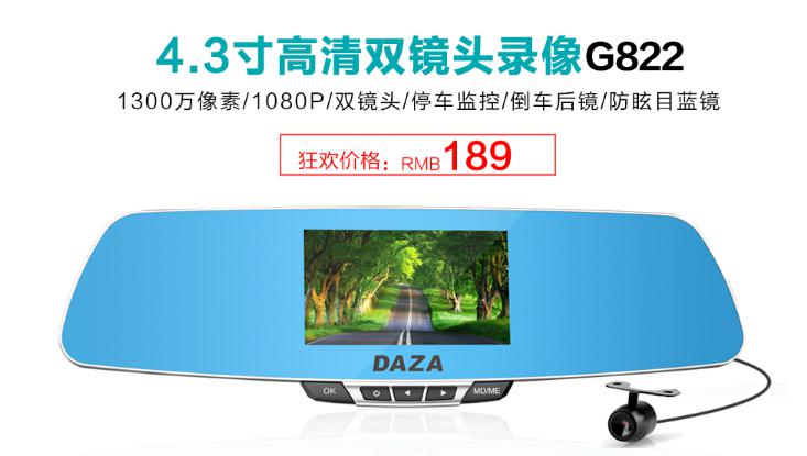 大智G822后視鏡行車記錄儀升級(jí)版采用防炫目藍(lán)鏡,擁有前后雙鏡頭,支持分辨率1920×1080P全高清動(dòng)態(tài)影像攝錄,能全方位守護(hù)愛車,而且?guī)У管嚭笠暎?4小時(shí)停車監(jiān)控。