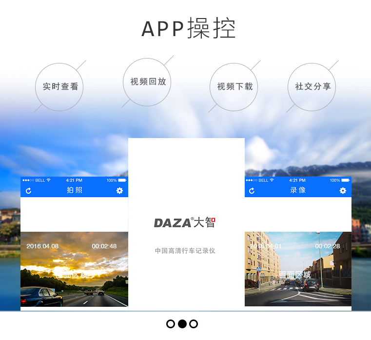 大智專車專用行車記錄儀采用Wifi跟手機(jī)進(jìn)行連接, 然后通過(guò)手機(jī)APP控制,就可以隨時(shí)隨地手機(jī)查看和操控拍照,操作簡(jiǎn)單而方便。通過(guò)應(yīng)用APP還能直接下載視頻和圖片文件,還可以分享到微信和微博等社交媒體上,將旅途的風(fēng)光分享給更多朋友。