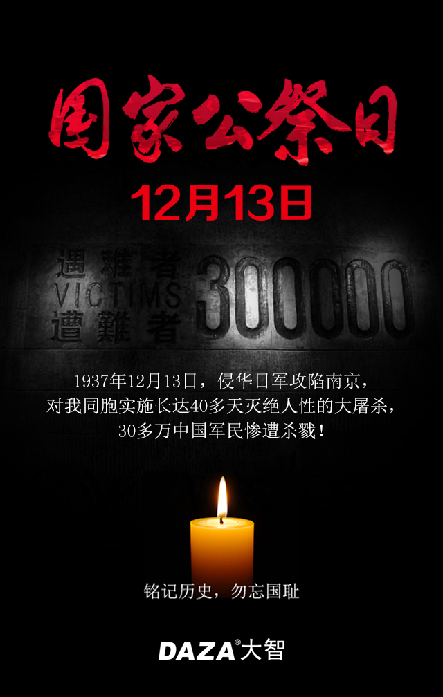 1937年12月13日,侵華日軍攻陷南京,對我同胞實施長達40多天滅絕人性的大屠殺,30多萬中國軍民慘遭殺戮!今天是南京大屠殺死難者國家公祭日,南京上空警報將再次鳴響。79年了,真相永遠不會沉沒,讓我們一起傳遞歷史的真相,祭奠同胞,吾輩自強!
