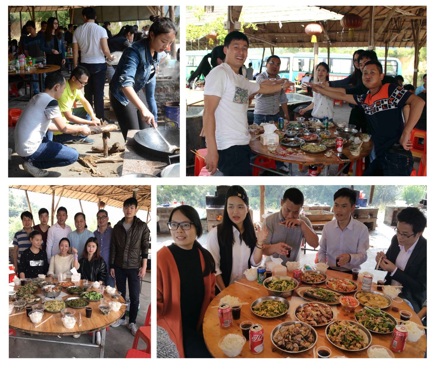 時(shí)間總是過的很快,轉(zhuǎn)眼間中午吃飯的時(shí)間又到了。中午的午餐由大智團(tuán)隊(duì)的家人自己動(dòng)手做,大家分工協(xié)作撿柴、劈柴、生火、洗菜、炒菜,事實(shí)證明會(huì)做飯的男人是最帥的,會(huì)下廚的女人是最美的。不一會(huì)兒的功夫,一桌桌色香味俱全的飯菜便擺上了桌子,大家圍坐在一起品嘗著自己親手烹調(diào)的美味佳肴。