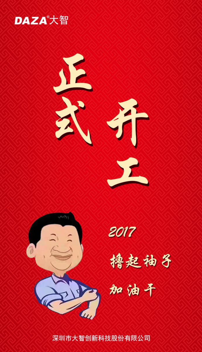 良辰雞日已到,今天大智創(chuàng)新正式開工,相關(guān)的工作已正式展開。大智全體員工懷著感恩的心,恭祝新老客戶新年聞雞起舞,盡占先機,錢程似錦,心想事成,萬事如意!2017,大智車規(guī)行車記錄儀繼續(xù)為弄我的出行保駕護航!